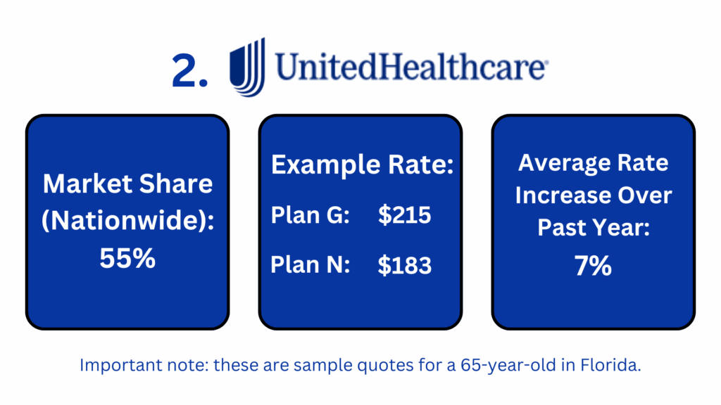 UnitedHealthcare has a market share of around 55% (nationwide), but as you can see from their sample rates below, Plan G is around $215 a month, and Plan N is $183.